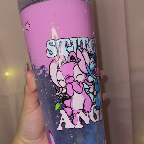This adorable 24oz premade tumbler features a sweet lovers wrap, heart-shaped glitter, and dual blue and pink lava that perfectly matches the vibe of the design. Cute, playful, and full of charm. 💗💙✨
